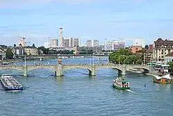 ![]() | 28 | Middle Bridge, Basel | Oldest still standing bridge location across the Rhine | 192 m (630 ft) | Masonry 6 arches | Road bridge Rhine | 1905 | Basel 47°33′36.5″N 7°35′22.9″E / 47.560139°N 7.589694°E | Basel-Stadt | [S 21] [5] [6] |