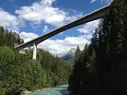 ![]() | 47 | Vulpera-Tarasp Bridge | 104 m (341 ft) | 236 m (774 ft) | Box girder Prestressed concrete | Road bridge Inn | 2010 | Scuol 46°47′21.5″N 10°16′56.1″E / 46.789306°N 10.282250°E | Grisons | [S 74] [66] |