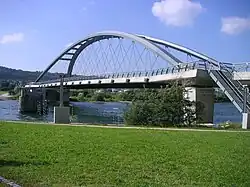 | 40 | Arch Bridge over the Aare | 106 m (348 ft) | 154 m (505 ft) | Arch Steel tied arch | 1997 | Grenchen–Arch 47°10′19.4″N 7°25′15.9″E / 47.172056°N 7.421083°E | Solothurn Bern | [S 68] | ||
