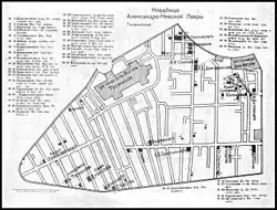 By the beginning of the 20th century the Tikhvin cemetery contained 1,325 monuments of various designs and sizes, including monumental crosses on pedestals, sarcophagi and steles.[2] There were several family plots with chapels and large crypts of granite and marble.[2]