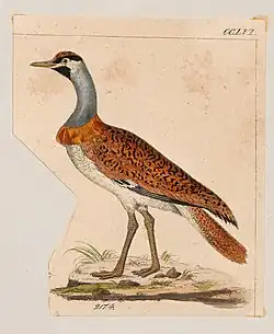 Bustards are birds in the family Otididae in the monotypic order Otidiformes. There are currently 26 extant species of bustards recognised by the International Ornithologists' Union.[1] Many species of fossil bustards are known from the Miocene onwards; however, their exact number and taxonomy are unsettled due to ongoing discoveries.[2]