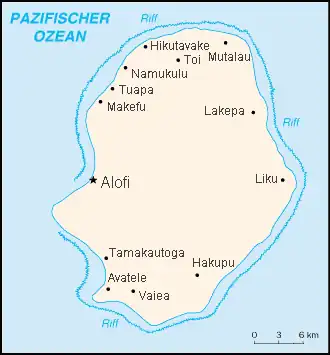 The villages Alofi North and Alofi South together serve as the capital of Niue, Alofi (pop. 614). In the following table, the villages are listed in clockwise order.