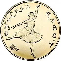 | 1991 | 5 rubles | Russian ballet | ballerina in the role of Odette | 9,000 | 999 | 7.87 | ![]() |