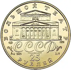 | 1991 | 25 rubles | Russian Ballet | Bolshoi Theatre | 5,000 | 585 | 5.32 | ![]() |
