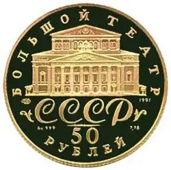 | 1991 | 50 rubles | Russian Ballet Proof | Bolshoi Theatre | 1,500 | 999 | 7.78 | ![]() |