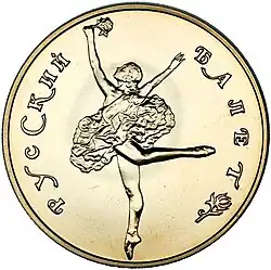 | 1991 | 10 rubles | Russian Ballet | Bolshoi Theatre | 6,000 | 585 | 2.65 | ![]() |