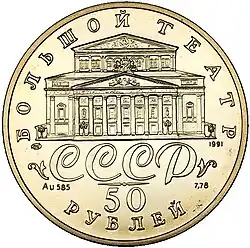 | 1991 | 50 rubles | Russian Ballet | Bolshoi Theatre | 2,400 | 585 | 13.3 | ![]() |