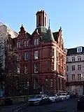 | Prudential Assurance Building | Edinburgh, Scotland 55°57′15″N 3°11′30″W / 55.9542°N 3.1917°W | 1895–98 | Designed with his son, Paul, this has four storeys and an attic, and is constructed in red sandstone. It has an L-shaped plan with a six-stage turret at the corner.[48][49] | B | |