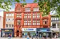 | District Bank | Nantwich, Cheshire 53°04′03″N 2°31′19″W / 53.0674°N 2.5219°W | | 1863 | A red brick bank building in Gothic style with some diapering in blue brick. It has two gables, one of which contains an oriel window.[9][10] | II |