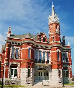 By the late 1800s, brick courthouses were more common than they had been earlier in the century. Many courthouses were being constructed in styles more elaborate than the typical vernacular architecture, which had previously been common. Neoclassical, Italianate, and Romanesque were the most common architectural styles of county courthouses during the late 1800s. High Victorian Gothic and Second Empire were also common.[5]