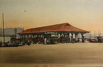 | Wilmer Street Ferry Pier | 1931 | 1979 | On Connaught Road West, east of the junction with Wilmer Street in Sheung Wan | The pier provided services to Sham Shui Po and from 1950 onwards also to Aberdeen, Cheung Chau and Tai O. It was constructed from reinforced concrete extending about 80 feet seaward from the shore. The space between pier and sea wall was spanned by a steel bridge. On the bridge ferry offices and a covered waiting area for passengers were built. The pier opened at the end of 1931.[1] The Hong Kong and Yaumati Ferry Company (HYF) used the pier for the service to the Sham Shui Po Ferry Pier.[2] After the war, the ferry service between Sheung Wan and Sham Shui Po was resumed in 1950.[3] In 1951, additional ferry services to Aberdeen, Hong Kong — Cheung Chau and Aberdeen — Tai O started.[4] The pier was severely damaged by Typhoon Hope in August 1979 and it was decided that expensive repairs should not be undertaken, since the Western reclamation works had started already. The Wilmer Street/Sham Shui Po service was cancelled[5] and the pier was removed in 1981. | |