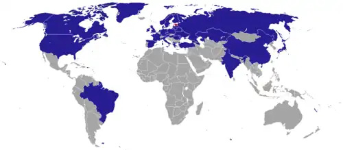 - ^ a b c d e f g h i j k l m n o p q r s t u v w x y z aa ab ac ad ae af ag ah ai aj ak al am an ao ap aq ar as at au av aw ax ay az ba bb bc bd be bf bg bh bi bj bk bl bm bn bo bp bq br bs bt bu bv bw bx by bz ca cb cc cd ce cf cg ch ci cj ck cl cm cn co cp cq cr "The Tallinn Diplomatic List" (PDF). Ministry of Foreign Affairs of Estonia. State Protocol Department, Ministry of Foreign Affairs of Estonia. 29 May 2025. Retrieved 25 June 2025.