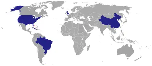 - ^ Accredited missions are the sending countries's permanent missions to the United Nations
