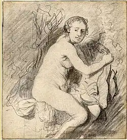 ![]() | Diana at the Bath | c. 1629 | Black chalk with some light brown wash | 18.1 x 16.4 cm | British Museum, London | Indented for transfer to the etching B201 |