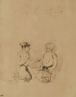 ![]() | The Emperor Akbar and his Son Selim in Apotheosis | c. 1656 | Pen and brown ink, brown wash, corrected with white bodycolour | 21.2 x 17.4 cm | Museum Boijmans Van Beuningen, Rotterdam | The drawing is related to the etching B029 |