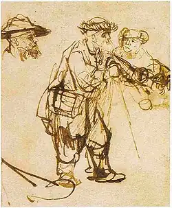 ![]() | Old Man Leaning on a Stick | 1632–1635 | Pen and brown ink | 13.5 x 7.8 cm | Metropolitan Museum of Art, New York | The drawing is related to the etching B133 |