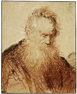 ![]() | Bust of a Bearded Old Man | c. 1631 | Red chalk, slightly touched with white chalk | 11.4 x 9.1 cm | Musée du Louvre, Paris | The drawing is related to the etching B315 |