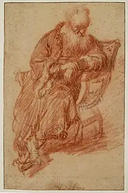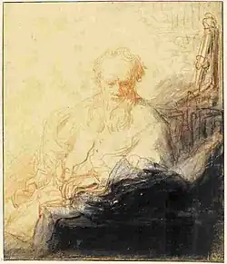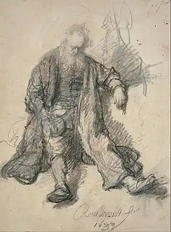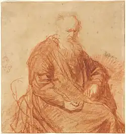 ![]() | Seated Old Man | c. 1630 | Red and black chalk | 14.5 x 14.3 cm | Nationalmuseum, Stockholm | The drawing is related to the etching B325 |
