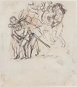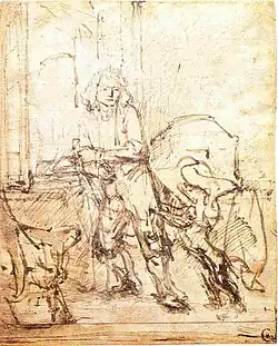 ![]() | A Man Helping a Rider to Mount a Horse | c. 1641 | Pen | 14.2 x 14.9 cm | Rijksmuseum Amsterdam | The drawing is related to the painting W153 |