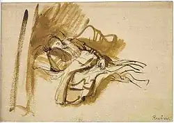 ![]() | Saskia in Bed | c. 1635-1640 | Pen and brown ink | 8.4 x 10.4 cm | British Museum, London | The drawing is related to the etching B369 |