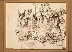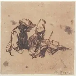 ![]() | Violin Player and Woman | c. 1631 | ? | ? | Kupferstichkabinett Berlin | The drawing is related to the etching B138 |