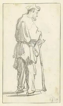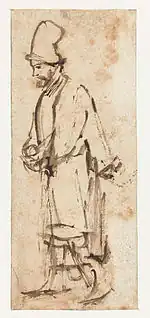 ![]() | Standing Beggar in Lost Profile | c. 1628-1629 | Pen | 29.4 x 17 cm | Rijksmuseum Amsterdam | The drawing is related to the etching B162 |