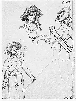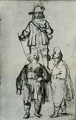 ![]() | Studies of an Officer, an Oriental and a Man in High Cap | c. 1641-1642 | Pen | 21.2 x 13.4 cm | Musée du Louvre, Paris | The drawing is related to the painting W190 |
