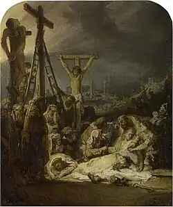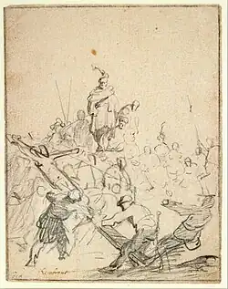 ![]() | The Raising of the Cross | 1628-1629 | Black chalk, heightened with white, framing lines in pencil and with the pen and brown ink | 19.3 x 14.8 cm | Museum Boijmans Van Beuningen, Rotterdam | The drawing is related to the painting W106 |