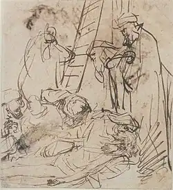 ![]() | The Entombment of Christ | c. 1640-1641 | Pen | 15.6 x 21 cm | Rijksmuseum Amsterdam | The drawing is related to the painting W162 |