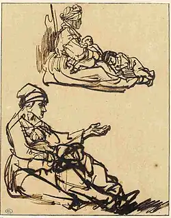 ![]() | Two Studies of a Woman Seated on the Ground | c. 1633-1634 | ? | ? | Musée du Louvre, Paris | The drawing is related to the painting W110 |