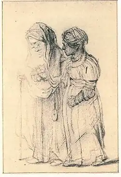 ![]() | Two Women Walking (Ruth and Naomi?) | c. 1642 | ? | ? | Royal Museums of Fine Arts of Belgium, Brussels | The drawing is related to the etching W120 |
