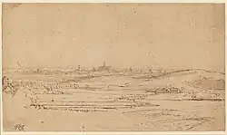 ![]() | View of Haarlem with the Saxenburg Estate in the Foreground | c. 1650-1651 | Pen and brown ink, brown wash, heightened with white | 8.9 x 15.2 cm | Museum Boijmans Van Beuningen, Rotterdam | The drawing is related to the etching B234 |