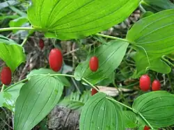 | Twisted Stalk, Wild Cucumber, Watermelon Berry, Streptopus amplexifolius | Tleikw Kahínti | Berries and young stems can be eaten fresh or raw. | Berries have a delicate flavor resembling watermelon. Stems taste similar to cucumber. Grows in shady, moist areas. The poisonous False hellebore plant sometimes grows close to the Watermellon berry, and has similar leaves. | |