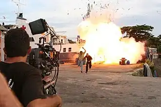 Worldwide, Miami is one of the largest production and distribution centers for commercial advertising, film, music, new media, still photography, and television industries. The film industry's combined economic impact in the local economy is about two billion dollars annually, with $100 to $150 million coming from more than 1,000 location filming shoots each year.[7] There are approximately 3,000 companies working in film and entertainment in Miami-Dade County, employing an estimated 15,000 workers.[8][9]