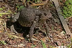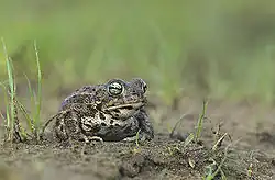 Amphibians are tetrapod animals from the class Amphibia comprising toads, frogs, salamanders, newts and caecilians.[1] They have an amphibious lifestyle, where the larvae are aquatic. Skin is generally soft and with glands. They show three type of respiration through moist skin, buccal cavity and lungs. Caecilians are limbless amphibians, whereas other amphibians have short limbs. Amphibians lay cluster of eggs as egg masses closer to a water body and show an external fertilization.