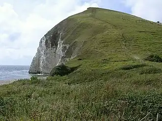 | Golden Cap[6][7] | 191 | 63 | SY384934 | TuMP | Hardown Hill[9] | South Dorset Downs | Highest point on the south coast of England. | |
