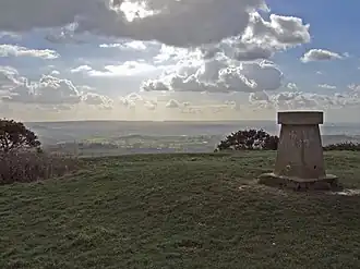 | Blackdown Hill[7] | 215 | 34 | ST395038[8] | TuMP | Lewesdon Hill[9] | Blackdown Hills | 8 km SW of Crewkerne, just NW of Pilsdon Pen | |