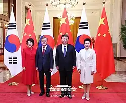 | 26 | Chengdu | December 23–25 | Working visit. Moon attended the China–Japan–South Korea trilateral summit. Also held a bilateral meeting with President Xi Jinping and Japanese Prime Minister Shinzō Abe. | |