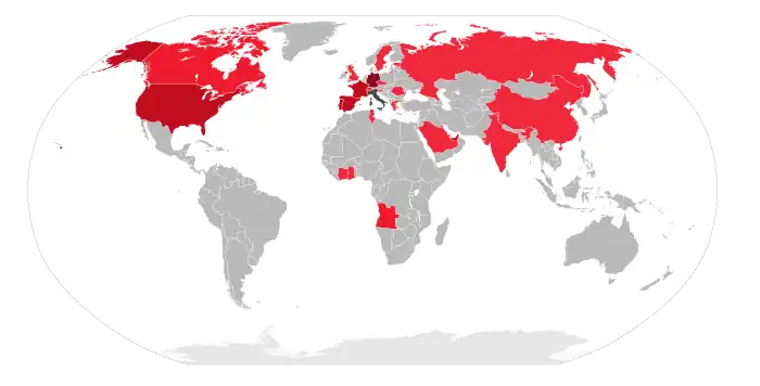 1 visit Angola, Canada, China, Czech Republic, Estonia, Ghana, Greece, Kuwait, India, Ivory Coast, Qatar, Romania, Russia, Saudi Arabia, Slovenia, Sweden, Switzerland, Tunisia, United Kingdom