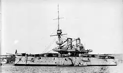 The Georgii Pobedonosets (1892) was part of a class of three ships of a very unusual design having the main guns on three barbettes grouped in a triangle around a central armored redoubt, two side-by-side forward and one on the centerline aft.