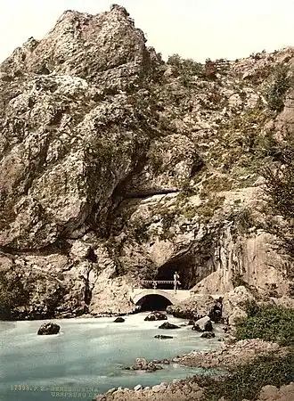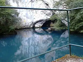 Aouk-Kladuk-Kabra[ 3] ca. 2800 1°06′08″S 131°47′22″E / 1.102088°S 131.789529°E / -1.102088; 131.789529 (Kladuk ) Aachtopf 8,590 L/s 303 cu ft/s Aach Germany(Baden-Württemberg) Rhine 240 47°50′48″N 8°51′28″E / 47.846708°N 8.857863°E / 47.846708; 8.857863 (Aachtopf ) Ain ez Zarqa 13,000 L/s 460 cu ft/s[ 4] Hermel Lebanon(Beqaa Governorate) Orentes 34°21′08″N 36°22′23″E / 34.352222°N 36.373056°E / 34.352222; 36.373056 (Ain ez Zarqa ) Big Spring 286 million US gal/d 12,500 L/s[ 5] Ozarks , Missouri US(Missouri) Mississippi Vrelo Trebišnjice 125 m3 /s 4,400 cu ft/s to 220 m3 /s 7,800 cu ft/s Bileća Bosnia and Herzegovina Trebišnjica -Neretva 42°51′52″N 18°25′17″E / 42.8644525°N 18.4212613°E / 42.8644525; 18.4212613 (Trebišnjica wellsprings group ) Vrelo Bune 43,000 L/s 1,500 cu ft/s Mostar Bosnia and Herzegovina Neretva 43°15′25″N 17°54′12″E / 43.256901°N 17.903445°E / 43.256901; 17.903445 (Vrelo Bune ) Bunica wellsprings 0 L/s 0 cu ft/s Mostar Bosnia and Herzegovina Neretva 43°13′17″N 17°53′24″E / 43.2213617°N 17.8901196°E / 43.2213617; 17.8901196 (Bunica ) Sana wellsprings group 0 L/s 0 cu ft/s Ribnik Bosnia and Herzegovina Danube 44°19′03″N 16°50′12″E / 44.3173773°N 16.8365586°E / 44.3173773; 16.8365586 (Sana wellsprings group ) Ribnik wellsprings group 0 L/s 0 cu ft/s Ribnik Bosnia and Herzegovina Danube 44°24′12″N 16°47′59″E / 44.4032695°N 16.7998445°E / 44.4032695; 16.7998445 (Ribnik wellsprings group ) Sanica wellsprings 0 L/s 0 cu ft/s Sanica Bosnia and Herzegovina Danube 44°36′23″N 16°37′07″E / 44.606495°N 16.618516°E / 44.606495; 16.618516 (Sanica_(river) ) Dabar wellsprings 0 L/s 0 cu ft/s Sanski Most Bosnia and Herzegovina Danube 44°42′34″N 16°38′22″E / 44.7093608°N 16.6394055°E / 44.7093608; 16.6394055 (Dabar_(river) ) Krušnica wellsprings 0 L/s 0 cu ft/s Bosanska Krupa Bosnia and Herzegovina Danube 44°50′41″N 16°10′06″E / 44.84472°N 16.1682996°E / 44.84472; 16.1682996 (Krušnica_(Una) ) Bastašica wellsprings 0 L/s 0 cu ft/s Drvar Bosnia and Herzegovina Danube 44°23′31″N 16°19′37″E / 44.3919433°N 16.3268101°E / 44.3919433; 16.3268101 (Bastašica wellsprings ) Bioštica wellsprings 0 L/s 0 cu ft/s Sokolac Bosnia and Herzegovina Danube 43°59′27″N 18°46′47″E / 43.990715°N 18.7796205°E / 43.990715; 18.7796205 (Bioštica ) Mokranjska Miljacka wellsprings 0 L/s 0 cu ft/s Pale Bosnia and Herzegovina Danube 43°59′27″N 18°46′47″E / 43.990715°N 18.7796205°E / 43.990715; 18.7796205 (Mokranjska Miljacka wellspring cave ) Vrelo Bosne Ilidža Bosnia and Herzegovina Danube 43°49′08″N 18°16′10″E / 43.818867°N 18.269447°E / 43.818867; 18.269447 Krupa wellsprings 0 L/s 0 cu ft/s Krupa na Vrbasu Bosnia and Herzegovina Danube 44°37′07″N 17°06′21″E / 44.6185773°N 17.1058846°E / 44.6185773; 17.1058846 (Krupa (Vrbas) ) Bistrica wellsprings 0 L/s 0 cu ft/s Livno Bosnia and Herzegovina Cetina 43°49′57″N 17°00′32″E / 43.8326132°N 17.0087698°E / 43.8326132; 17.0087698 (Bistrica (Livanjsko Polje) ) Trebižat wellsprings 0 L/s 0 cu ft/s Grude Bosnia and Herzegovina Neretva 43°20′12″N 17°19′24″E / 43.336715°N 17.323457°E / 43.336715; 17.323457 (Trebižat_(river) ) Blautopf 2,300 L/s 81 cu ft/s Blaubeuren Germany(Baden-Württemberg) Danube ca. 150 48°24′58″N 9°47′04″E / 48.416228°N 9.78433°E / 48.416228; 9.78433 (Blautopf ) Brenztopf 1,270 L/s 45 cu ft/s Königsbronn Germany(Baden-Württemberg) Danube 48°44′15″N 10°06′47″E / 48.73747°N 10.112979°E / 48.73747; 10.112979 (Brenztopf ) Brunnenmühlenquelle 1,500 L/s 53 cu ft/s Heidenheim Germany(Baden-Württemberg) Danube > 100 48°39′55″N 10°09′00″E / 48.665178°N 10.149972°E / 48.665178; 10.149972 (Brunnenmühlenquelle ) Buchbrunnenquelle 927 L/s 32.7 cu ft/s Dischingen Germany(Baden-Württemberg) Danube 48°40′49″N 10°21′51″E / 48.680375°N 10.364088°E / 48.680375; 10.364088 (Buchbrunnenquelle ) Creux-Genat Courtedoux Switzerland(Kanton Jura) Rhone 47°23′47″N 7°01′38″E / 47.396372°N 7.0273°E / 47.396372; 7.0273 (Creux-Genat ) Dan-Quelle 6,000 L/s 210 cu ft/s Dan Israel(Galiläa) Jordan 33°14′55″N 35°39′09″E / 33.248639°N 35.652472°E / 33.248639; 35.652472 (Dan-Quelle ) Foce del Timavo San Giovanni al Timavo Italy(Gorizia) Timavo 45°47′12″N 13°35′30″E / 45.786694°N 13.591557°E / 45.786694; 13.591557 (Foce del Timavo ) Fosse Dionne 311 L/s 11.0 cu ft/s Tonnerre France(Yonne ) Armançon /Yonne /Seine 47°51′24″N 3°58′14″E / 47.85667°N 3.97056°E / 47.85667; 3.97056 (Fosse Dionne ) Gailachquelle 650 L/s 23 cu ft/s Mühlheim Germany(Bayern) Danube 48°51′37″N 10°59′20″E / 48.860278°N 10.988889°E / 48.860278; 10.988889 (Gailachquelle ) Gleßbrunnen 700 L/s 25 cu ft/s Wolkertshofen Germany(Bayern) Danube 48°47′38″N 11°15′17″E / 48.793903°N 11.254742°E / 48.793903; 11.254742 (Gleßbrunnen ) Hederquellen 1,900 L/s 67 cu ft/s Upsprunge Germany(Nordrhein-Westfalen) Rhine 51°39′13″N 8°36′03″E / 51.653731°N 8.600808°E / 51.653731; 8.600808 (Hederquellen ) Izvor Omble 24,000 L/s 850 cu ft/s Dubrovnik Croatia(Dubrovnik-Neretva) Ombla 42°40′33″N 18°08′10″E / 42.67575°N 18.136083°E / 42.67575; 18.136083 (Izvor Omble ) Kesselquelle 700 L/s 25 cu ft/s Zwiefalten Germany(Baden-Württemberg) Danube 48°13′47″N 9°27′09″E / 48.229677°N 9.4526°E / 48.229677; 9.4526 (Kesselquelle ) Kocherursprung 680 L/s 24 cu ft/s Oberkochen Germany(Baden-Württemberg) Rhine 48°46′20″N 10°05′43″E / 48.772097°N 10.095367°E / 48.772097; 10.095367 (Kocherursprung ) Krasny Klyuch (ru ) 14,880 L/s 525 cu ft/s Krasny Klyuch Russia(Bashkortostan) Volga 55°22′36″N 56°40′47″E / 55.37666°N 56.679615°E / 55.37666; 56.679615 (Krasny Klyuch ) Lippequelle 740 L/s 26 cu ft/s Bad Lippspringe Germany(Nordrhein-Westfalen) Rhine 51