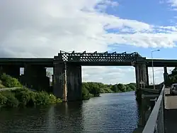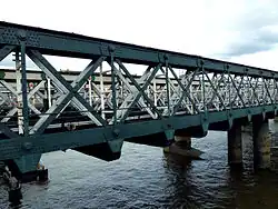 | Runcorn Railway Bridge | 1868 | Also known as Ethelfleda Bridge or Britannia Bridge. Carries the Liverpool branch of the West Coast Main Line over the River Mersey and the Manchester Ship Canal. | ![]() |