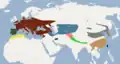 | Canis lupus signatus | Iberian wolf NV: (in Spanish) lobu, lubu,[64]lubucu (wolverine, Spanish: lobezno).[65] | L: 120–180 cm; T: 40 cm; H: 70–80 cm; We: 28–46 kg. The Iberian wolf (C. l. signatus), a smaller wolf than other European wolves, has a characteristic dark stripe on the forelegs, another dark patch along the tail and another around the withers (saddle-shaped). | | NT [66] | |