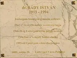 Plaque of dr. István Bády in Szentgyörgymező | Name | Term | Notes |