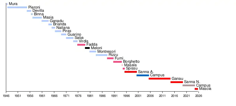 | 24 | Nicola Sanna (b. 1963) | 31 May 2014 | 2 July 2019 | PD | PD • SEL • CD | 2014 | ||
