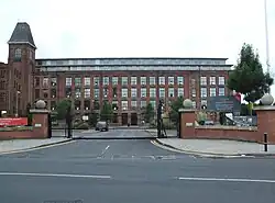 ![]() | Notes: A Grade II* listed building[17] Pear Mill, Stockport, was an Edwardian mill, one of the last cotton spinning mills to be built, commencing production in July 1913. The architects were A.H. Stott & Sons and the building is typical of their work. It was constructed with concrete floors, and meticulous detailing. The power was provided by a Manhattan type steam engine by George Saxon & Co. Transmission was by rope drives. The mill had 137,312 mule spindles which remained until the 1950s when they were replaced by 33,636 ring spindles, the mill being electrified at the same time. It ceased operation as a textile mill in March 1978[2][18] | ||||