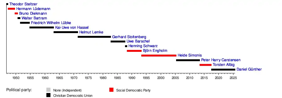 The minister-presidents of Schleswig-Holstein since 1946 have been: