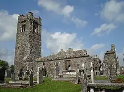 | Kells Abbey | Augustinian Canons Regular — Arroasian founded after 1140 (1140-8), at the instance of St Malachy; Augustinian nuns — Arroasian founded after 1144, confirmed to the nuns of Clonard; (possibly a double monastery) nuns probably transferred to Calliaghstown 1195; destroyed by the Anglo-Normans 1176, who proceeded to build a castle, destroyed later that year; apparently refounded by Hugh de Lacy; dissolved 11 November 1539, surrendered by Abbot Richard Plunkett; granted to Sir Gerald Fleminge 1541  |  St Mary _____________________ Ceanannus-mor; Cenandas; Kenan; kenlis  |  53°43′39″N 6°52′47″W / 53.727509°N 6.879662°W | |
