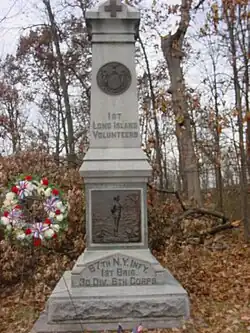 | Colonel Augustus van Horne Ellis Statue 124th New York Infantry Monument | | Houck's Ridge, Sickles Avenue 39°47′33″N 77°14′32″W / 39.792376°N 77.242274°W | Maurice J. Power P. B. Laird | 1884 | MN 129 | Colonel Ellis was killed in the battle. |