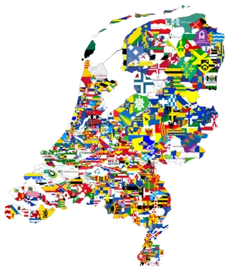 The list of municipal flags of the Netherlands lists the flags of municipalities of the Netherlands. Most municipalities of the Netherlands have unique flags, which most of them are derived on the corresponding municipal coat of arms, such as colours, symbols, and figures, just like how the provincial flags are made.[1] Therefore, the list will also discuss the symbolism of the municipal flags. Please note that some of the flags listed are either de facto flags, flags that are flown for local purposes, or flags that are not yet approved by municipal resolution.